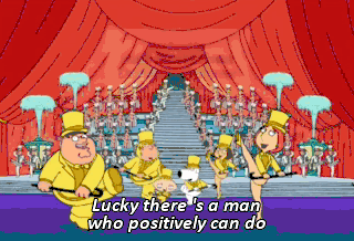 Lucky there 's a man who positively can do All the things that make us (PETER SCREAMING)