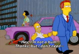 Hey, I'm not a bum. Thanks, but I don't need-- Okay, if you insist, but--