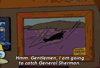 Hmm. Gentlemen, I am going to catch General Sherman. - Ooh ! - Oh, my ! After the supermarket, we'll go to the video store, grab a Krusty Burger and head for the arcade.