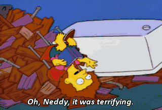 Oh, Neddy, it was terrifying. I thought I was headed for the eternal bliss of paradise. Oh, my gosh! Look at Rod! I have a headache! Well, sir, everyone's alive. Guess that's something to be thankful for.
