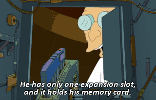 He has only one expansion slot, and it holds his memory card.