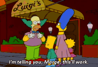 They'll think I'm Krusty and give us free stuff. I've been getting free stuff all day!