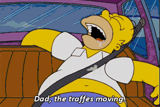 Dad, the traffes moving. Huh? Whoo-hoo! Pedal to the metal!