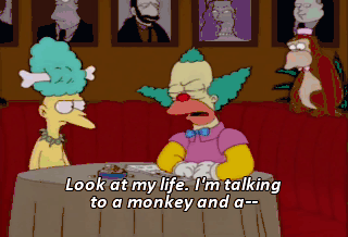 Look at my life. I'm talking to a monkey and a-- I don't know what the hell you are.