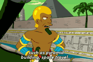 such as pyramid building, space travel... and how to prepare our dead so as to scare Abbott and Costello. Also Wolfman. Look at these swanky tombs. These people really know how to die. Are you crazy?