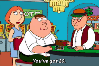 You've got 20. Hit me. Peter, don't. - Hit me. - 21. - Hit me. - Peter!