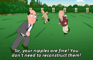 Sir, your nipples are fine! You don't need to reconstruct them! I want Hershey Kiss nipples, and I want you to pay for them!
