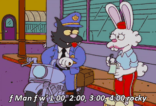 f Man f w' 1:00, 2:00, 3:00, 4:00 rocky .r 5:00, 6:00, 7:00, 8:00 rocky 1* 9:00, 10:00, f 1:00, 12:00 rocky Nuts to you, copper! j Gonna rock around the clock-N