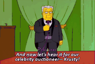 And now let's hear it for our celebrity auctioneer-- Krusty! The Clown! It's Krusty the Clown! Whoo-hoo!