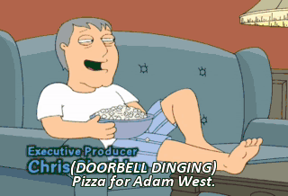 (DOORBELL DINGING) Pizza for Adam West. No! You gave me Canadian bacon instead of bacon! This misdeed cannot go unpunished. Pizza delivery man, prepare to meet your maker at the hands of my cat-launcher.