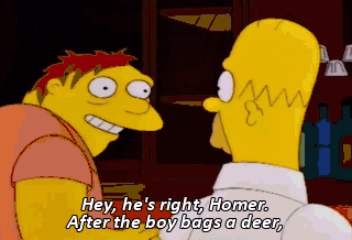Hey, he's right, Homer. After the boy bags a deer, all the diet sodas in the world won't turn him back. Then you just sit back and watch the grandkids roll in. Hunting, eh?