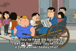 You-You're here on business? I bet its business 'cause I had a fare earlier today that... This used to be a people business, but now, I don't know.