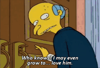 Who knows? I may even grow to... love him. Bartholomew! Ugh! Smithers, get it off me! Bart, you're coming home.