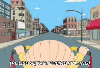 (POLICE SQUAD! THEME PLAYING) (CAT MEOWS AGGRESSIVELY) (PEOPLE YELLING)