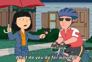 What do you do for a living? I work in accounts receivable at Quahog Insurance. It's not too demanding, the pay is good, and it's a great way to stay in shape. Well, we should wrap this up. You're getting wet.