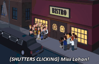 (SHUTTERS CLICKING) Miss Lohan! Lindsay! Over here, Lindsay! Excuse me, which one was Lindsay Lohan's dessert fork? Uh, I think it was that one.