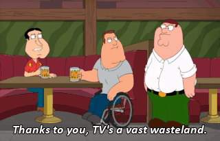 Thanks to you, TV's a vast wasteland. You know how I know that phrase? I read it in a book, you monster!