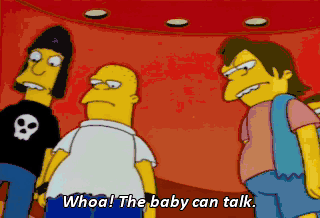 Whoa! The baby can talk. I am not a baby. Tell it to The Ear, baby. Good one, guys. - Simpson, go kiss the Virtual Ass. - Yes, sir.