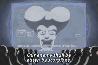 Our enemy shall be eaten by scorpions. And we shall bow down and worship to ourselves.