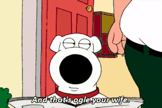 And that's ogle your wife. If Lois were my woman, I'd keep an eye on her. Then again, I'm the jealous type. Wow! Lois Griffin! I love your act. Nice melons. Listen, pal--