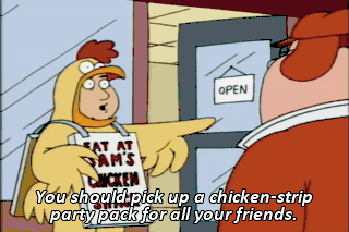 Whoa--Whoa, look, pal. I don't take coupons from giant chickens. Not after last time.
