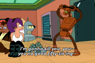 I'm gonna kill you, you-- you no good fifty-six-ing-- Don't kill me yet! I'm startin' to come down with Stockholm syndrome, handsome.