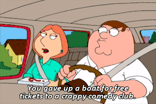 You gave up a boat for free tickets to a crappy comedy club.