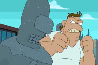 (GROANING) ROBOT GOD: Walk toward the light, Bender. BENDER: Man, do I have to walk?