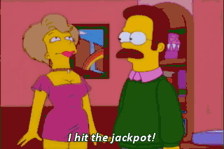 I hit the jackpot! So, sittin' on the bed, eh? Get out, Homer. Look, I married her, but that is as far as we went. We never ever made whoopee. Or even mouth whoopee.