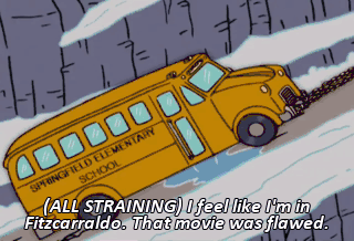 (ALL STRAINING) I feel like I'm in Fitzcarraldo. That movie was flawed.