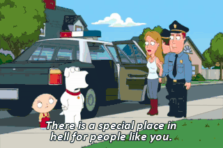 There is a special place in hell for people like you. Come on, let's go home. STEWIE: Man, when she gets to jail, she's gonna be major lez-chow. BRIAN: She sure is, Stewie. She sure is.
