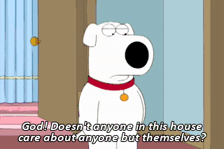 God! Doesn't anyone in this house care about anyone but themselves? Hey, Brian, how was the seminar? Meg, please. I'm serious, Stewie. I've had an amazing few days and nobody cares.