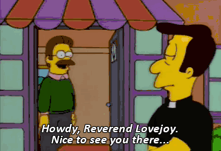 Howdy, Reverend Lovejoy. Nice to see you there... on my lawn with... your dog. Oh. Uh, oh. Bad dog. Look at that. Right on Ned's lawn.