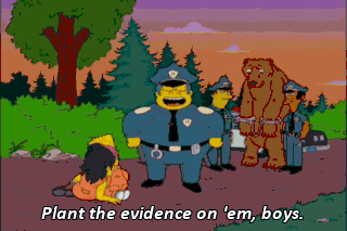 Plant the evidence on 'em, boys. Chief, we don't have to. These ones are actually guilty. Super. Makes our job that much easier. Oh, Bart, my troubled little lamb. You'll be in jail for so long.