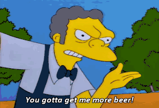 You gotta get me more beer! Sorry, I'm all out. How about some turpentine? Or caulk? Delicious caulk?