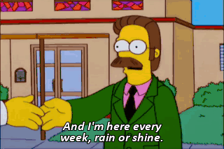 And I'm here every week, rain or shine. it's a show about Ned About him losin' his sweet wife