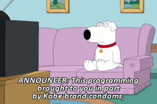 ANNOUNCER: This programming brought to you in part by Kobe brand condoms, the protection you want for the sex she doesn't. Brian, do you know where Peter is?