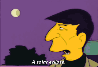 A solar eclipse. The cosmic ballet goes on. Does anyone want to switch seats? I did it.