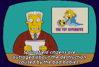 Springfield citizens are outraged about the destruction caused by the bad babies. Bad babies, yes, you was.