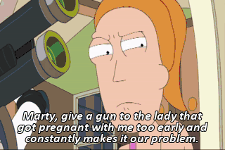Marty, give a gun to the lady that got pregnant with me too early and constantly makes it our problem.