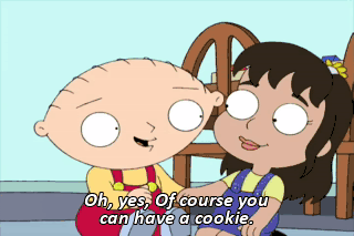 Oh, yes, Of course you can have a cookie. Stay right there. "Cookie."