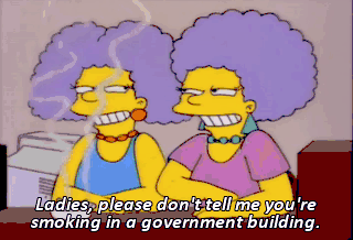 Ladies, please don't tell me you're smoking in a government building. Because that is precisely the kind of infraction... that can cost a couple of sisters their promotion.