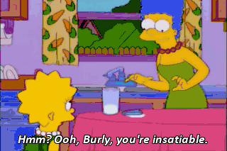 Hmm? Ooh, Burly, you're insatiable. Oh, Burly, you're so rugged and manly. Marge, a bee almost stung me today. I felt the wing go right by my ear.