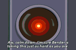 Aw, calm down. I'm sure Bender is taking this just as hard as you are. Bender is great! Oh, Bender is great! Bender, Bender, Bender! You could've picked a better time to dump the ship, Bender.