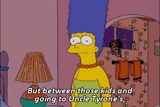 But between those kids and going to Uncle Tyrone's, we can't be alone. We're alone now. BART: You're never alone in this crap shack! Why, you little... (BART CHOKING)