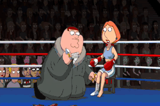 My idiot husband here booked this match without my knowledge... (BELL DINGS) PETER: She's from the Ukraine, Lois! She doesn't speak English!