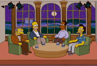 Welcome to The Homer Simpson Show. I'm your host, next card. Homer Simpson, it's great to be here in, next card. Springfield, my guests are Moe Szyslak, local businessman, Carl Carlson, raconteur,