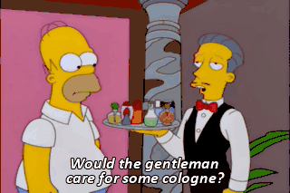 Would the gentleman care for some cologne? You have anything with ground-up whale in it? But of course.