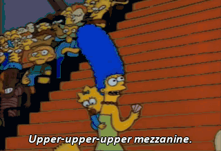 Upper-upper-upper mezzanine. Hmm. Well, these must be ours. These seats stink.