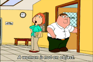 A woman is not an object. Your mother is right, son. Listen to what it says. Peter! I didn't say that. Lee Majors did. What? Women are things.
